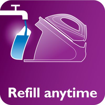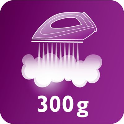 Philips Perfect Care eroga vapore continuo fino a 120 g/min ed ha un colpo di vapore fino a 300 g, grazie alla ridotta quantità di acqua che viene pompata ogni volta all'interno della caldaia.